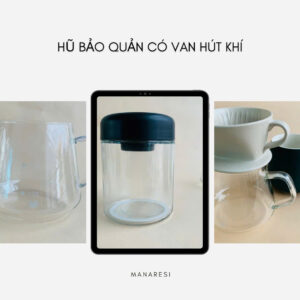 - Hũ thủy tinh có van: Giúp bảo quản hạt cà phê chưa xay hoặc đã xay một cách kín khí, giữ cho hương vị cà phê luôn tươi mới.