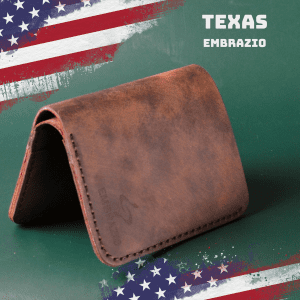 Embrazio là thương hiệu đồ da của Mỹ. Đầu tiên với các loại đồ da phục vụ cho đấu ngựa. Do vậy, đồ da của Embrazio nổi tiếng với độ bền vượt thời gian. Dòng ví da đứng Embrazio Texas được làm từ 100% da bò Waxy Leather – Crazy Horse . Loại da này chính hãng cực bền, độ bền lên đến 5-10 năm. Không nổ mặt da. Các vết trầy xước trên bề mặt da dễ dàng xử lý, khi sử dụng sản phẩm càng ngày càng bóng đẹp.